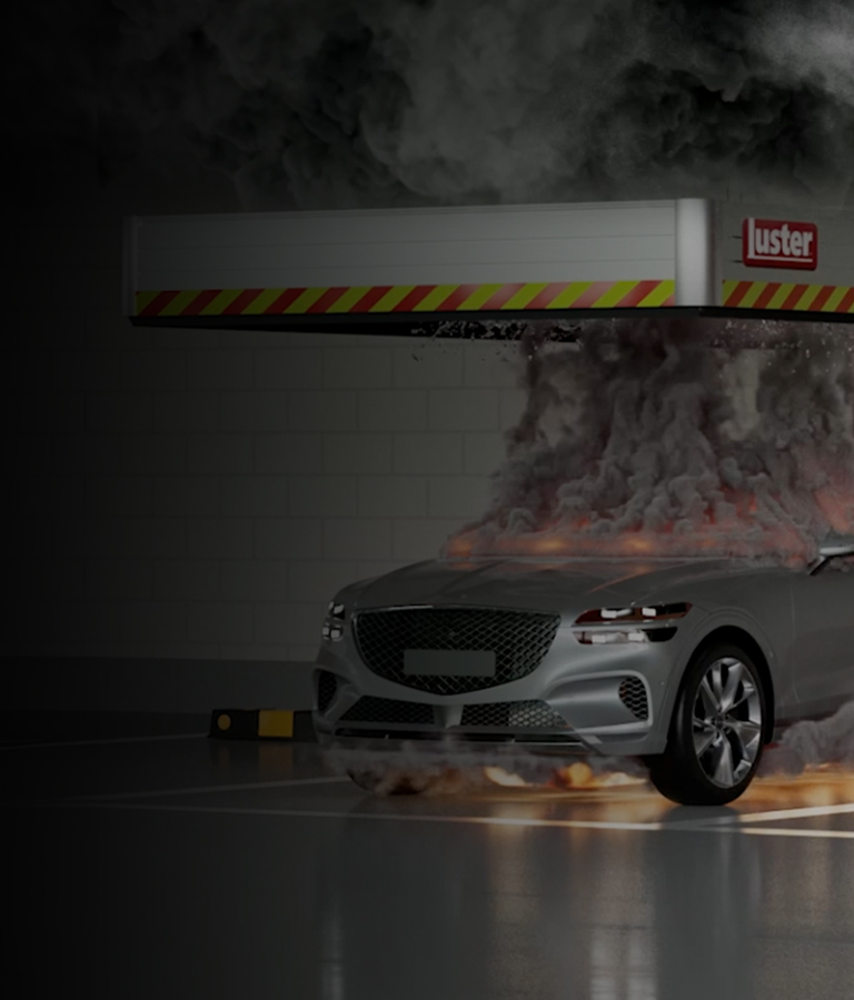 전기차화재의 연기와 화염의 확산을 막고, 화재를 빠르게 진압합니다.